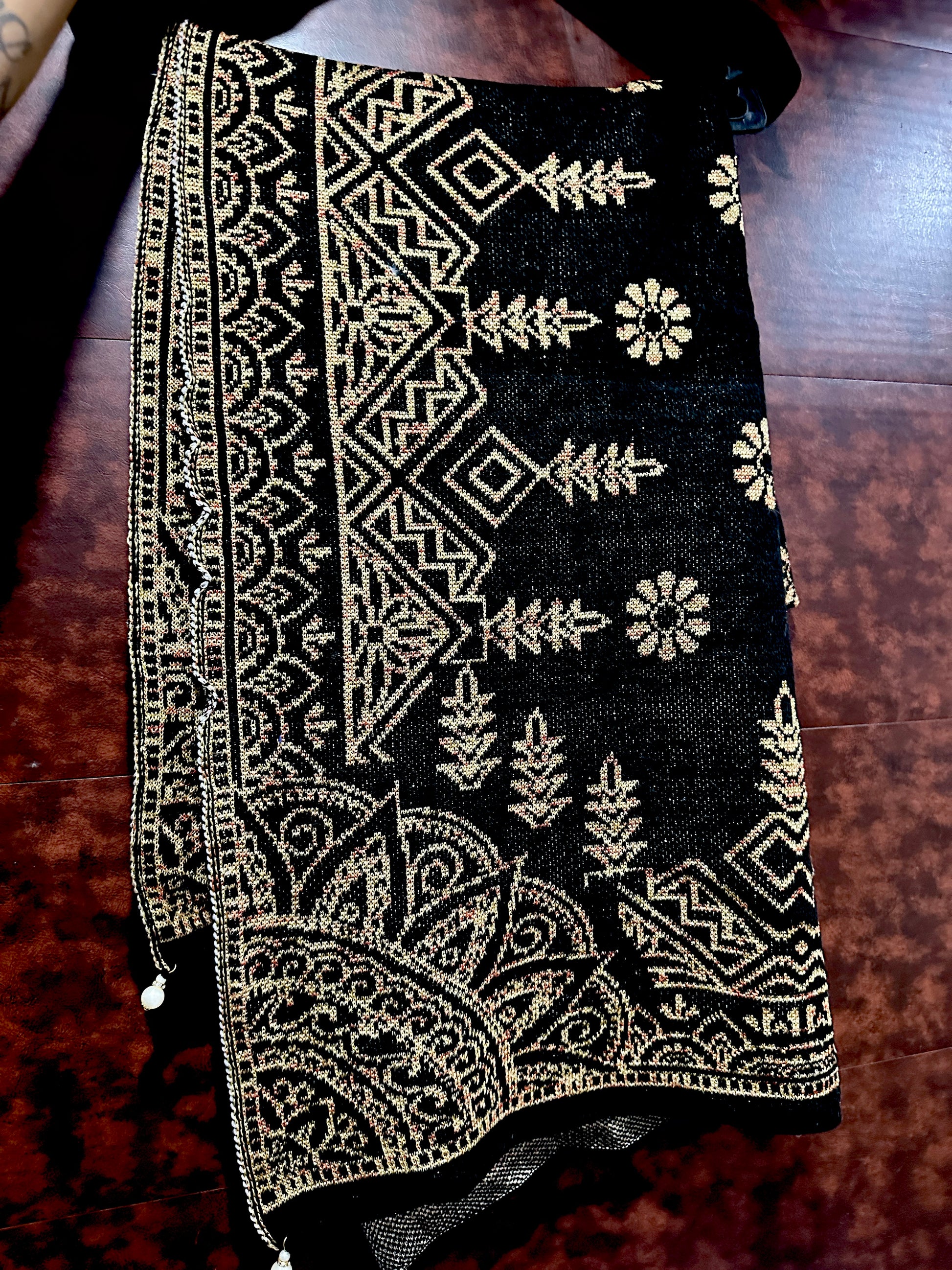 Handcrafted Black & Gold Ethnic Patterned Shawl